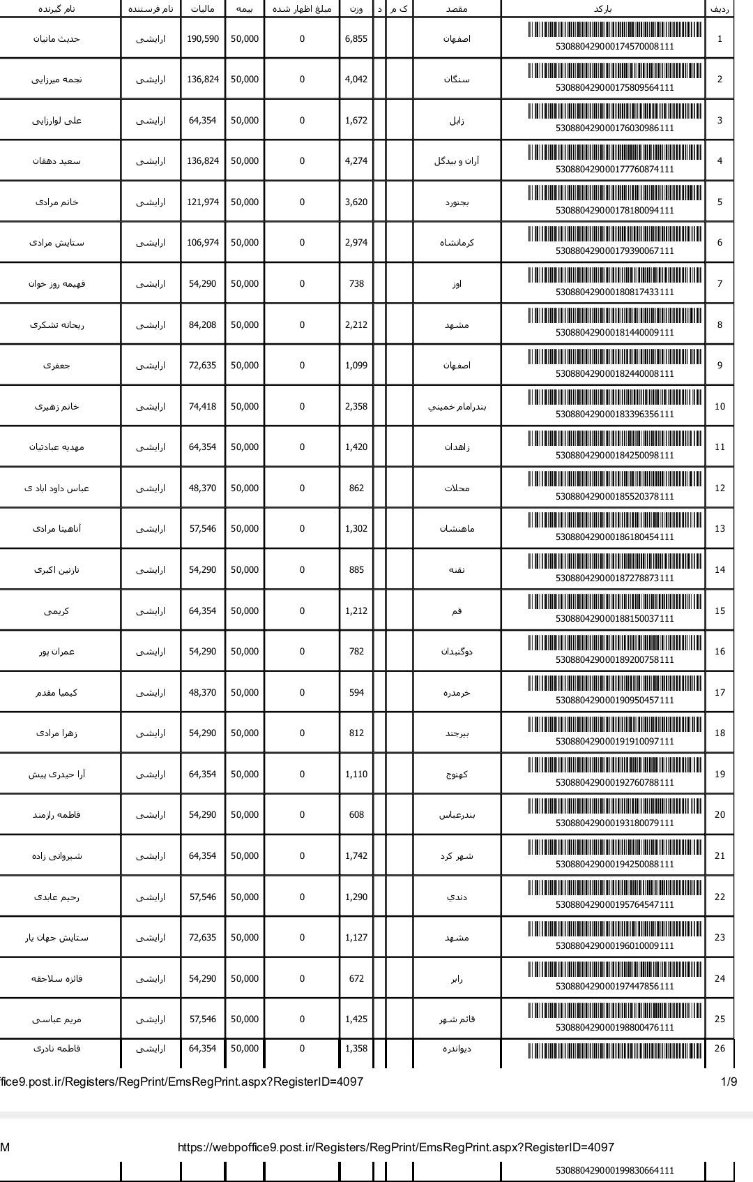 سفارشات گالری صالحی 6 و 7 اردیبهشت